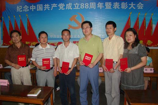 為迎接中國共產(chǎn)黨成立88周年,公司黨委于6月30日下午召開了“紀(jì)念中國共產(chǎn)黨成立88周年暨表彰大會”。合肥地區(qū)在崗黨員、非黨員中層干部、入黨積極分子,外地分公司經(jīng)理、書記以及受表彰的先進個人參加了大會。大會由黨委書記戴樹明同志主持。