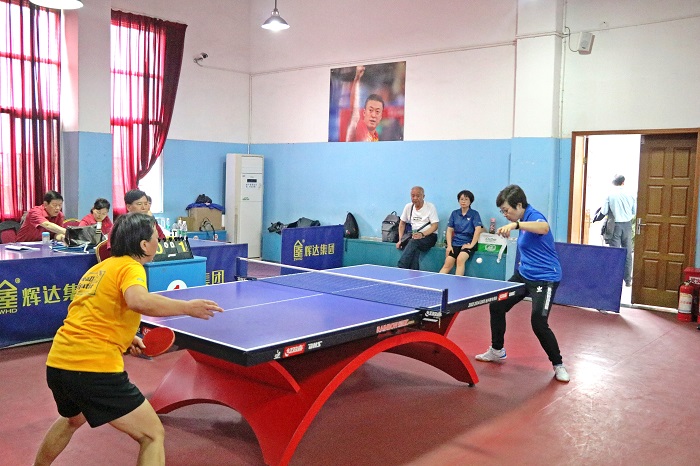 乒乓球隊(duì)員劉萍在比賽場(chǎng)中奮力拼搏