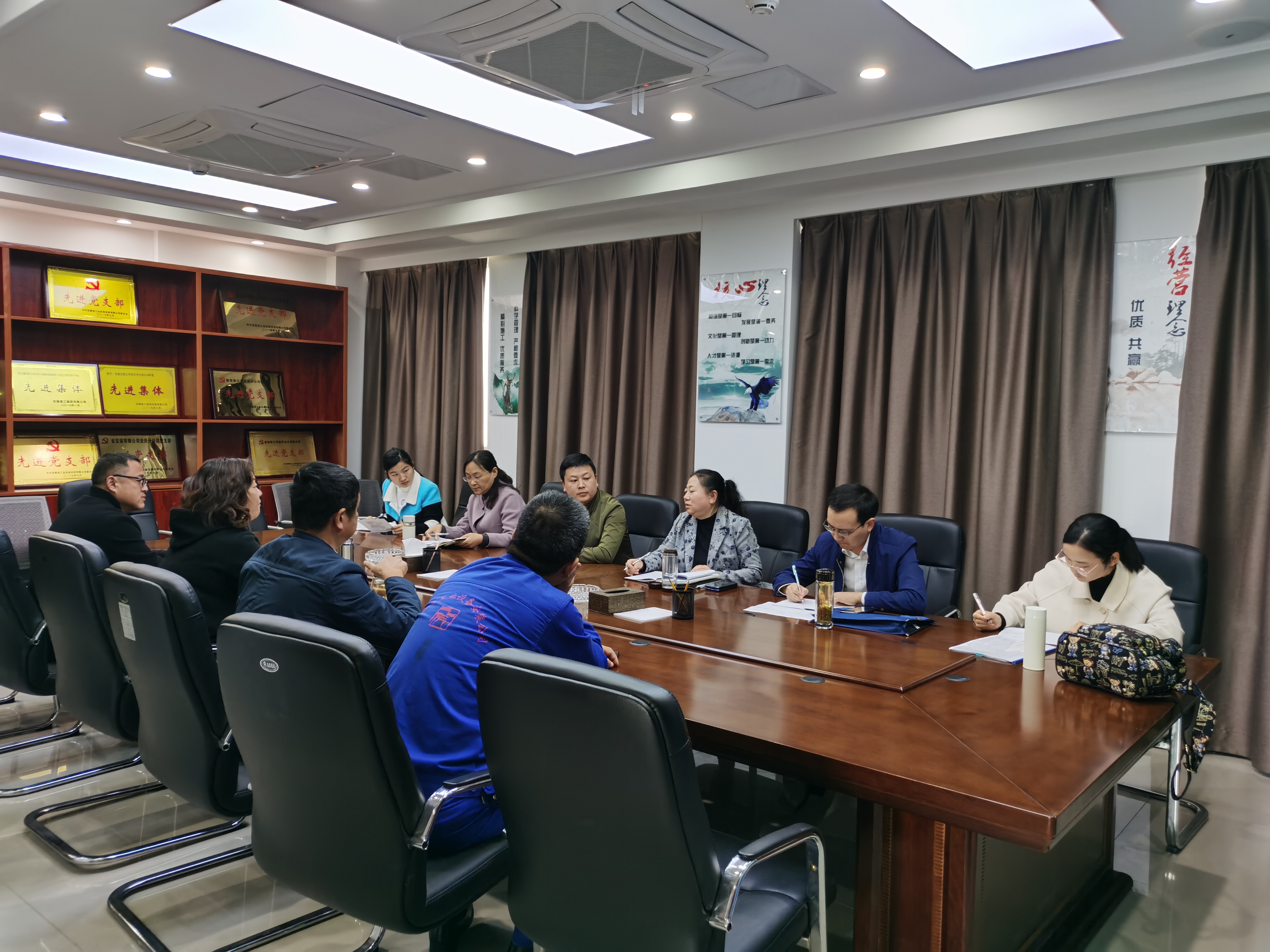 督查組就安慶分公司“學(xué)習(xí)貫徹習(xí)近平總書記考察安徽和在合肥主持召開扎實推進長三角一體化發(fā)展座談會重要講話精神專題研討班有關(guān)講話精神情況”“節(jié)日期間作風(fēng)建設(shè)情況”以及“三項經(jīng)費使用情況”等方面工作開展督查。隨后,安慶分公司經(jīng)理史崇松就分公司今年以來經(jīng)營投標、項目情況以及施工過程中的重點、難點等方面工作進行了詳細的匯報。督察組還就督查情況對分公司各方面工作提出了詳細的意見和建議。