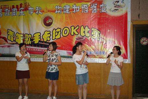為慶祝新中國成立60周年暨傳統(tǒng)中秋佳節(jié),推動企業(yè)文化建設,9月4日下午,由公司團委、工會共同舉辦的以“喜迎國慶·中秋 構(gòu)建和諧省安”為主題的青年歌手卡拉OK大賽在公司職工之家隆重舉行。來自公司機關、項目部及各分公司選派的18名選手參加了比賽。集團公司機關黨委書記宋曉英、工會女工委主任胡愛紅、人力資源部主任胡建英等應邀擔任本次比賽評委。公司領導及廣大職工踴躍到場觀看、鼓勁。