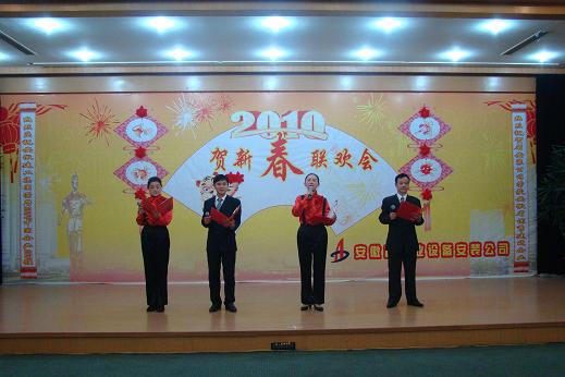 公司王軍邦總經(jīng)理代表公司黨政領(lǐng)導(dǎo)班子致新年賀詞,感謝一年來上級領(lǐng)導(dǎo)的大力支持和關(guān)懷,感謝全體員工的辛勤付出和熱愛。伴隨著優(yōu)美的旋律,聯(lián)歡會在舞蹈《好運(yùn)來》中正式拉開序幕,火紅的扇子,舞出了我們共同的期盼;詩朗誦《承諾》,聲情并茂、鏗鏘有力的述說了省安三年來發(fā)生的巨大變化和取得的輝煌成績,博得了在場觀眾的陣陣掌聲。安慶分公司的戲劇小品《比翼雙飛》與合肥項(xiàng)目部的男聲獨(dú)唱《恭喜發(fā)財(cái)》同獲一等獎,蚌埠分公司的說唱《三載巨變展新貌》和經(jīng)理辦的小品《昨天今天 明天》同獲二等獎。