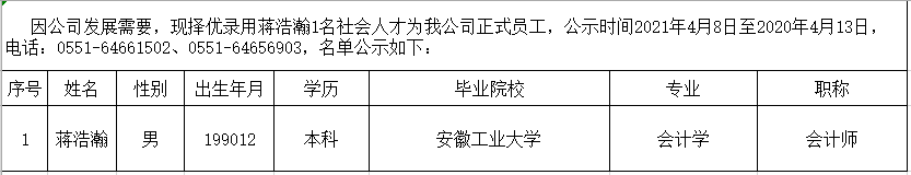 2021年擬錄用社會(huì)人才公示