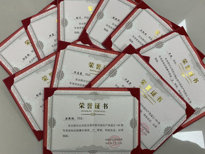 4月27至28日,合肥分公司在線上組織進行了慶祝中國共產黨成立100周年黨史知識競賽活動。黨史知識競賽吸引了132人報名參與,根據(jù)答題情況共有10名同志獲獎。黨史知識競賽活動旨在以賽促學,以學促用,推動黨史學習教育往深里走、往實里走,在扎實理論學習的同時也讓黨史學習教育入腦入心。