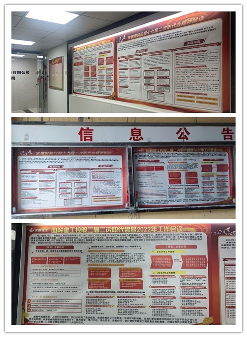 為統(tǒng)一思想,營(yíng)造良好氛圍,分公司領(lǐng)導(dǎo)帶頭學(xué),黨支部利用支委會(huì)、機(jī)關(guān)(項(xiàng)目部)專題學(xué)習(xí)會(huì)、班子理論學(xué)習(xí)會(huì)、黨員活動(dòng)日以及下發(fā)會(huì)議精神圖解、張貼宣傳欄、深入基層一線宣講等多種形式,迅速掀起學(xué)習(xí)宣貫集團(tuán)二屆二次職代會(huì)暨2022年工作會(huì)議和公司十七屆二次職代會(huì)精神的熱潮。