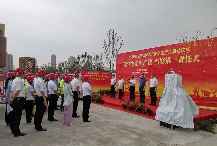 在全國第21個“安全生產(chǎn)月”活動到來之際,5月30日上午,安徽安裝公司2022年“安全生產(chǎn)月”啟動儀式在年配套1000萬臺新能源汽車及年產(chǎn)2億臺制冷空調(diào)壓縮機關鍵性能件制造基地項目舉行。公司黨委書記、董事長胡六中,紀委書記、工會主席李楊,副總經(jīng)理趙伯平,總工程師吳繼成及機關各部門、各分公司代表參加了本次活動。