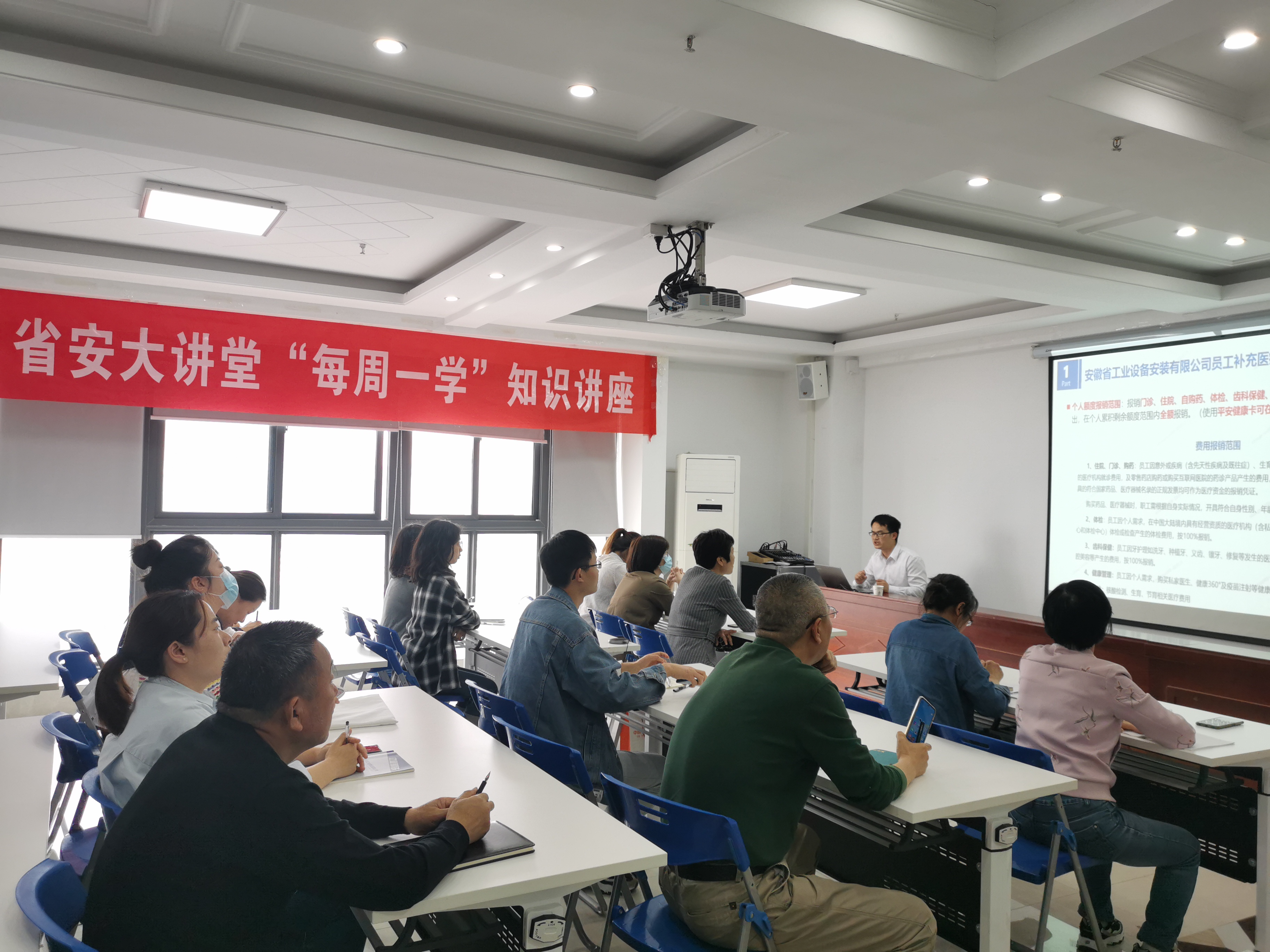 為落實(shí)公司《補(bǔ)充醫(yī)療保險(xiǎn)管理辦法》,進(jìn)一步提高員工醫(yī)療保障水平,使職工充分了解補(bǔ)充醫(yī)療保險(xiǎn)相關(guān)政策、條款及操作流程,人力資源部聯(lián)系平安養(yǎng)老保險(xiǎn)股份有限公司安徽分公司于5月13日舉辦了補(bǔ)充醫(yī)療保險(xiǎn)知識(shí)講座。公司機(jī)關(guān)各部門,所屬各單位共計(jì)40余名職工參加了培訓(xùn)。