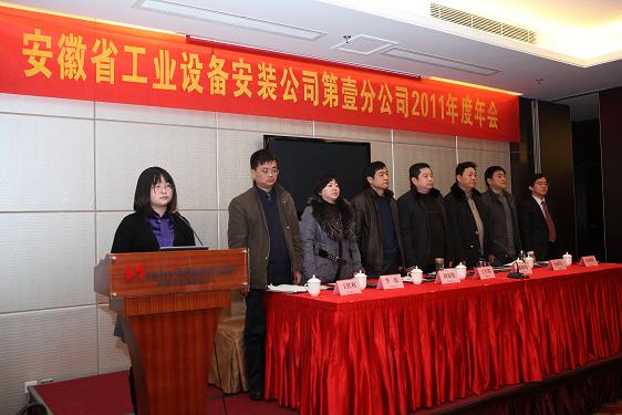 2011年1月18日上午9時,安徽省工業(yè)設(shè)備安裝公司第壹分公司2011年度年會在浙商瑞雅國際大酒店2樓會議廳隆重舉行,總經(jīng)理王軍邦、黨委書記戴樹明、副總經(jīng)理劉安俊等一行蒞臨會議。